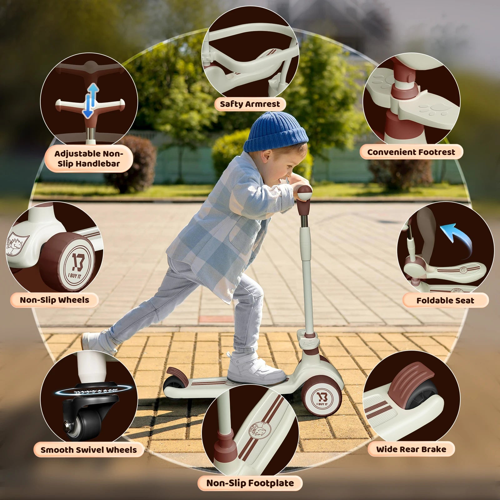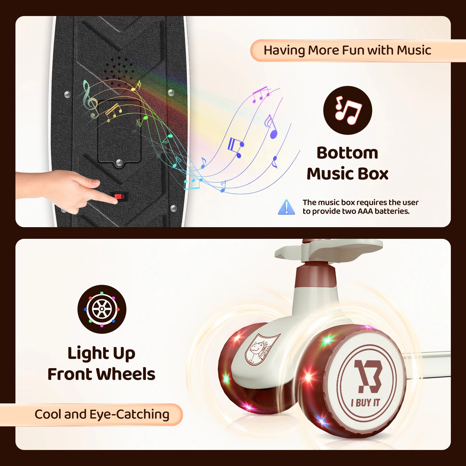 3 Wheels Scooter, Multifunctional Toddler Scooter with Light Up Wheels, Kids Scooter with Adjustable Handbar, Foldable Kick Todd