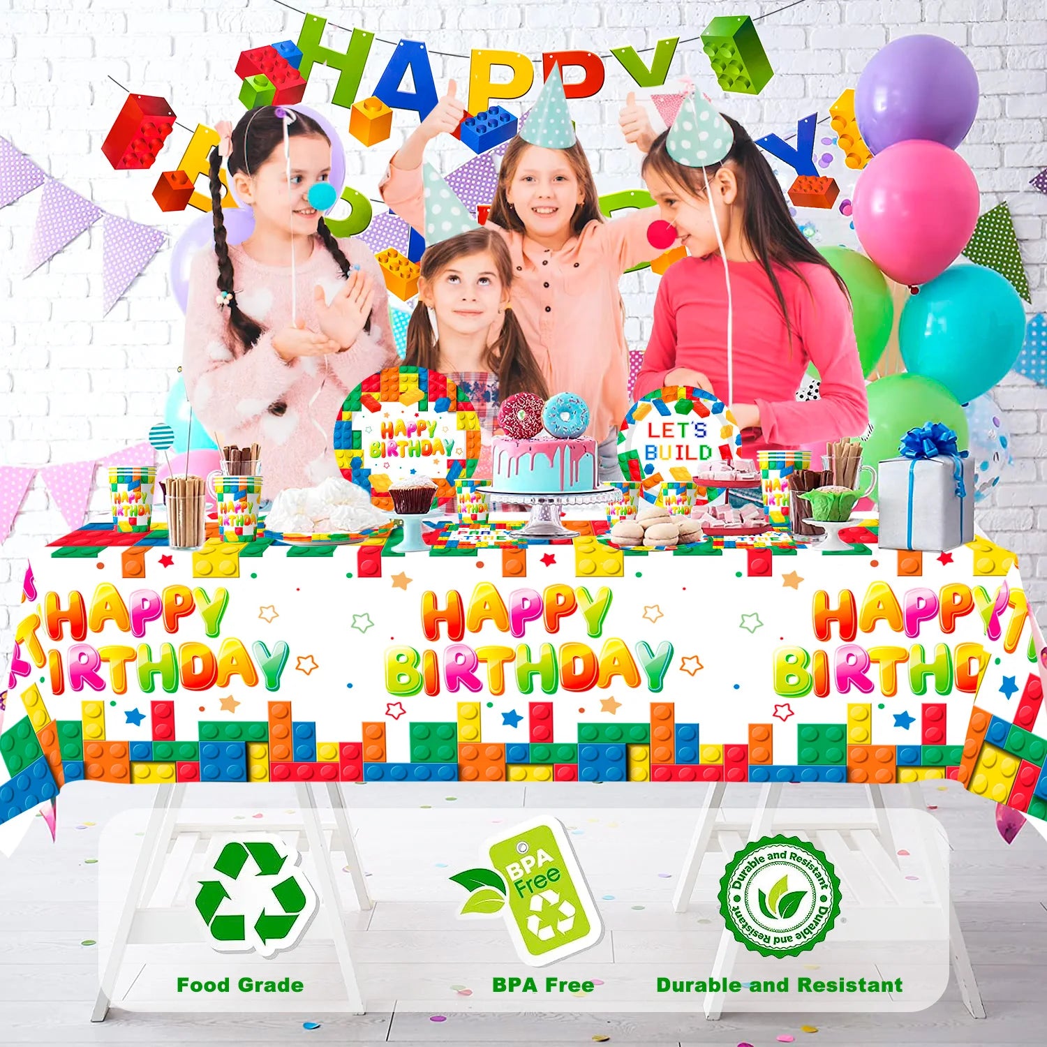 Building Blocks Birthday Party Supplies-66pcs Party Tableware set-Building Block Party Plates Napkins Tablecloth etc