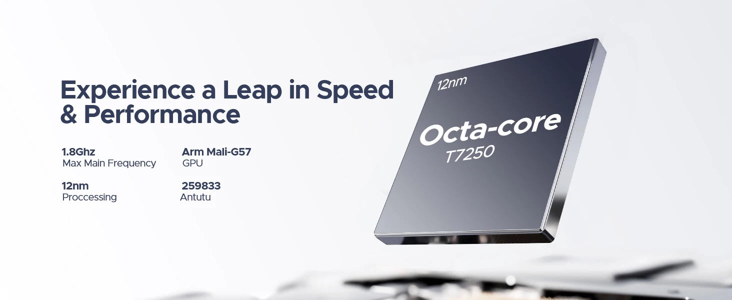 CPU: UNISOC T7250 Octa Core 1.8GHz /12nm