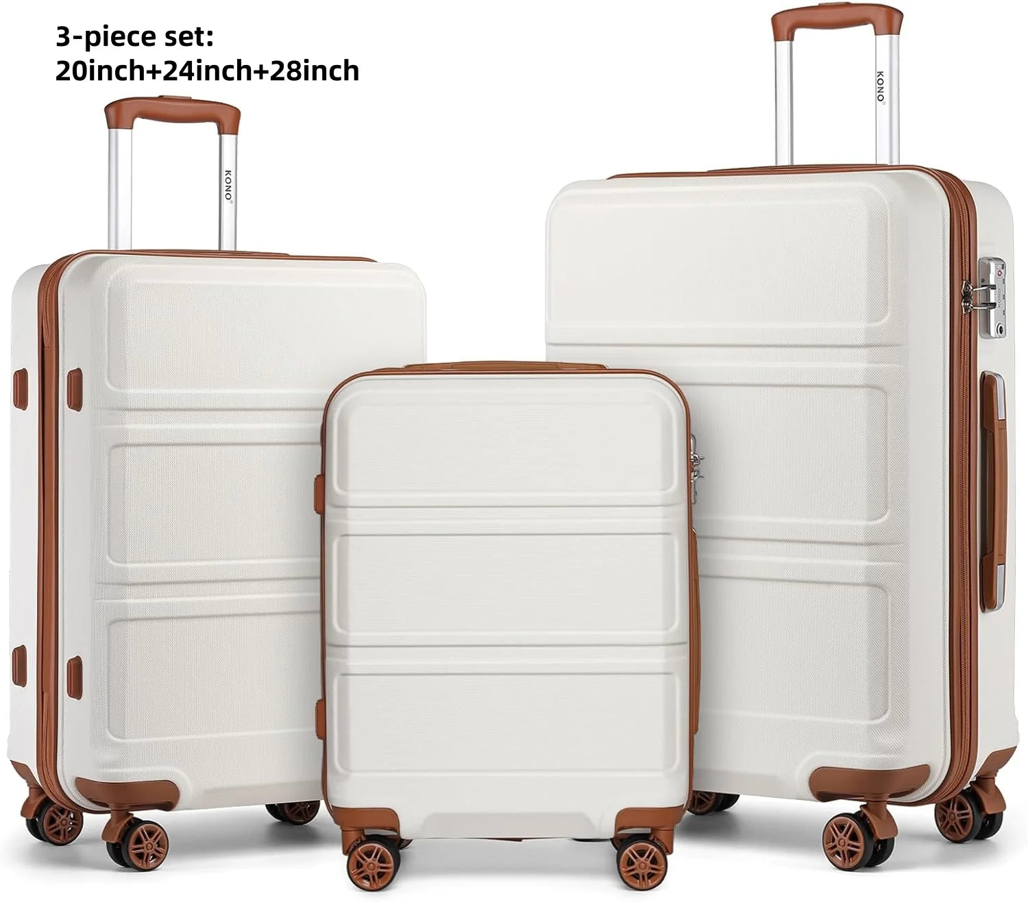 Kono Fashion Luggage Set, Lightweight ABS Hard Shell Trolley Suitcases with TSA Lock, 4 Spinner Wheels (2/3/4/6 Pcs Set)