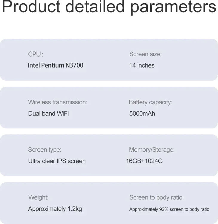 LENO 14.1"Ultra Slim Laptop 16GB RAM 2TB SSD Windows 11 Intel N3700 Notebook Gamer 1920*1080 Display Office Study Computer PC