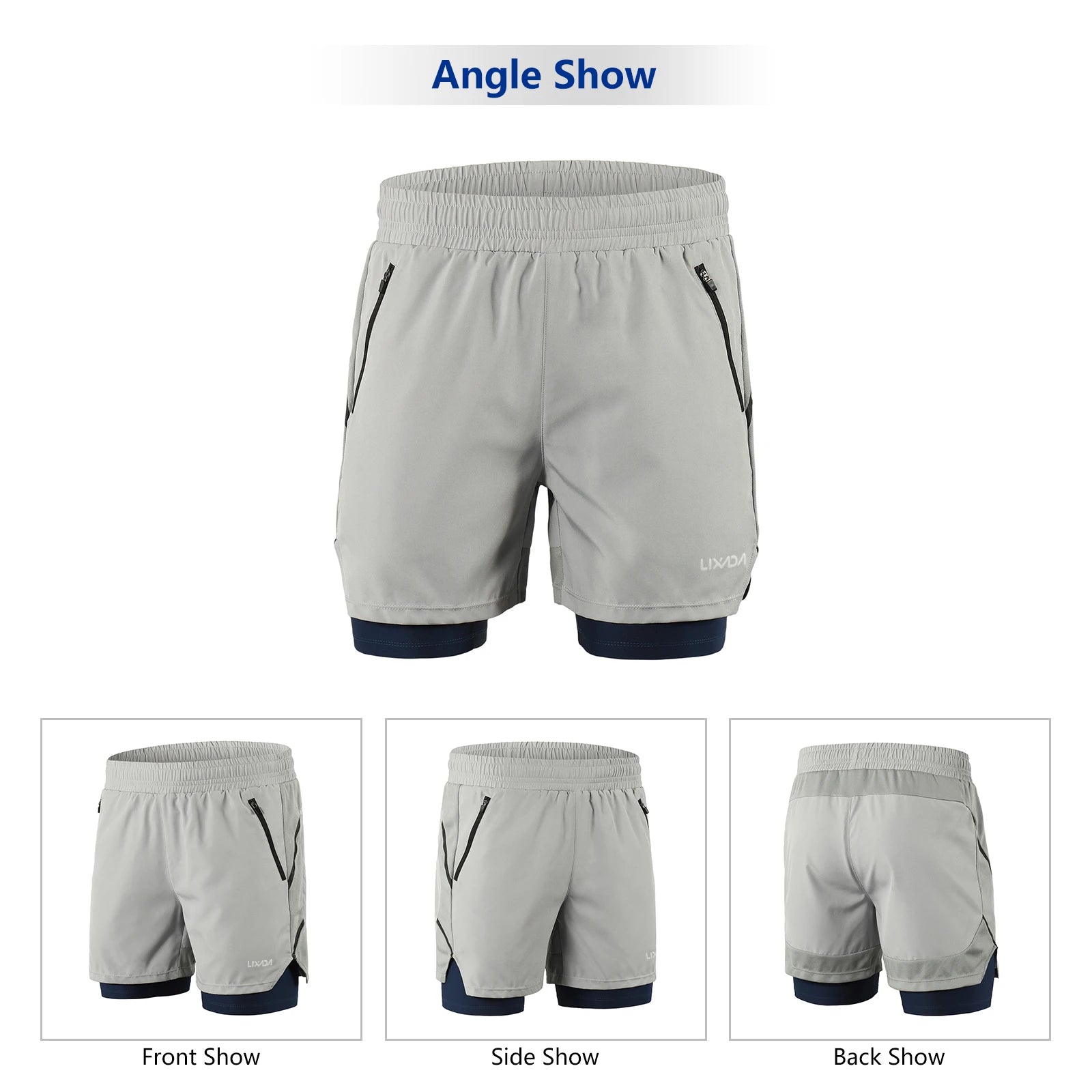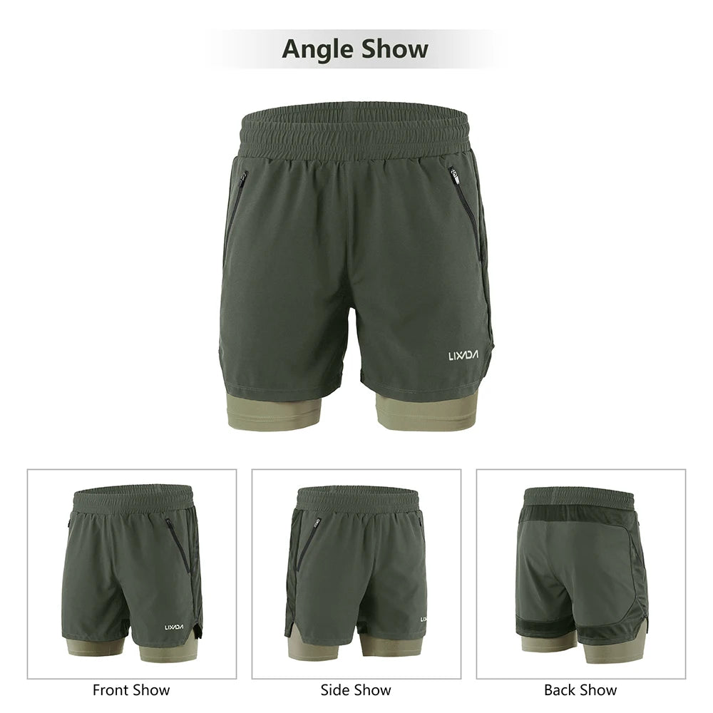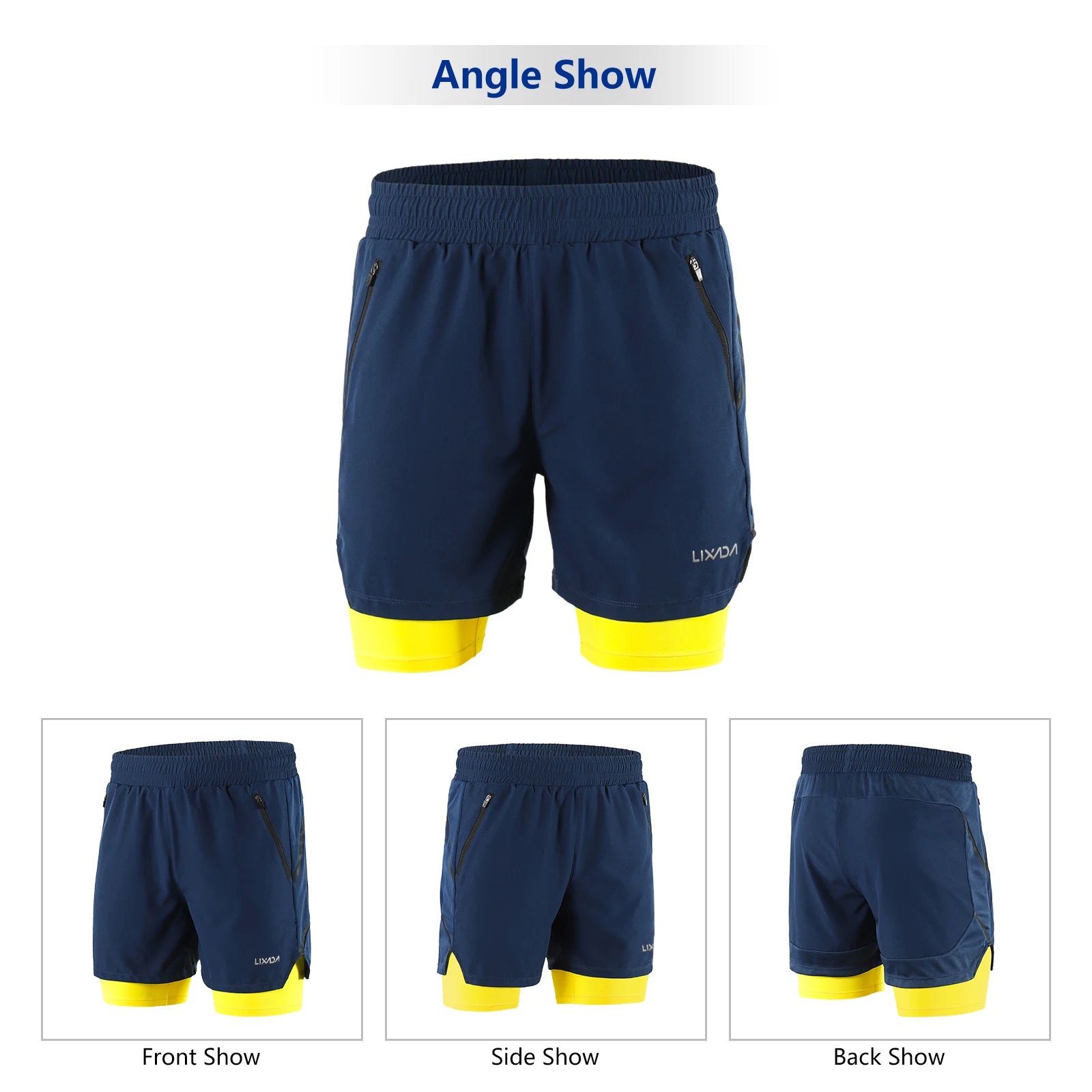 Lixada Men 2 in 1 Running Shorts Quick Drying Breathable Active Training Exercise Jogging Marathon Cycle Shorts