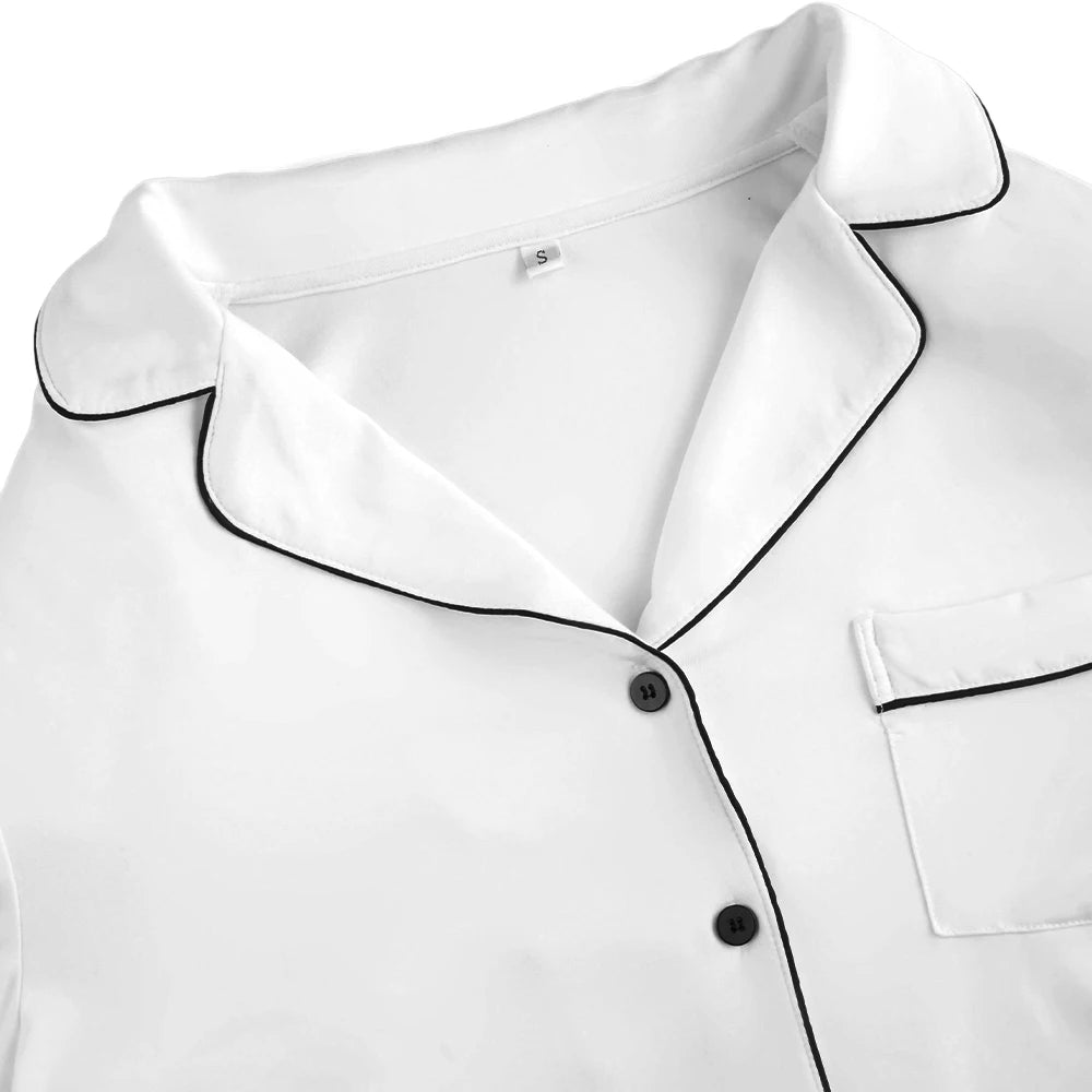 Modishion Long Sleeve Lapel Pajamas Solid Color Loungewear Set Button Top and Pants Women's Sleepwear Loungewear