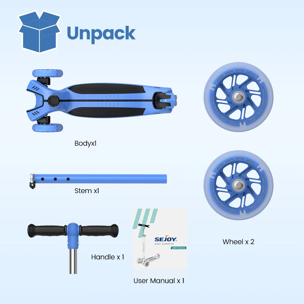 Sejoy Baby Scooter 2-8 Years with LED Wheels Adjustable Height Foldable Design & Dual Modes - Military-Grade Frame
