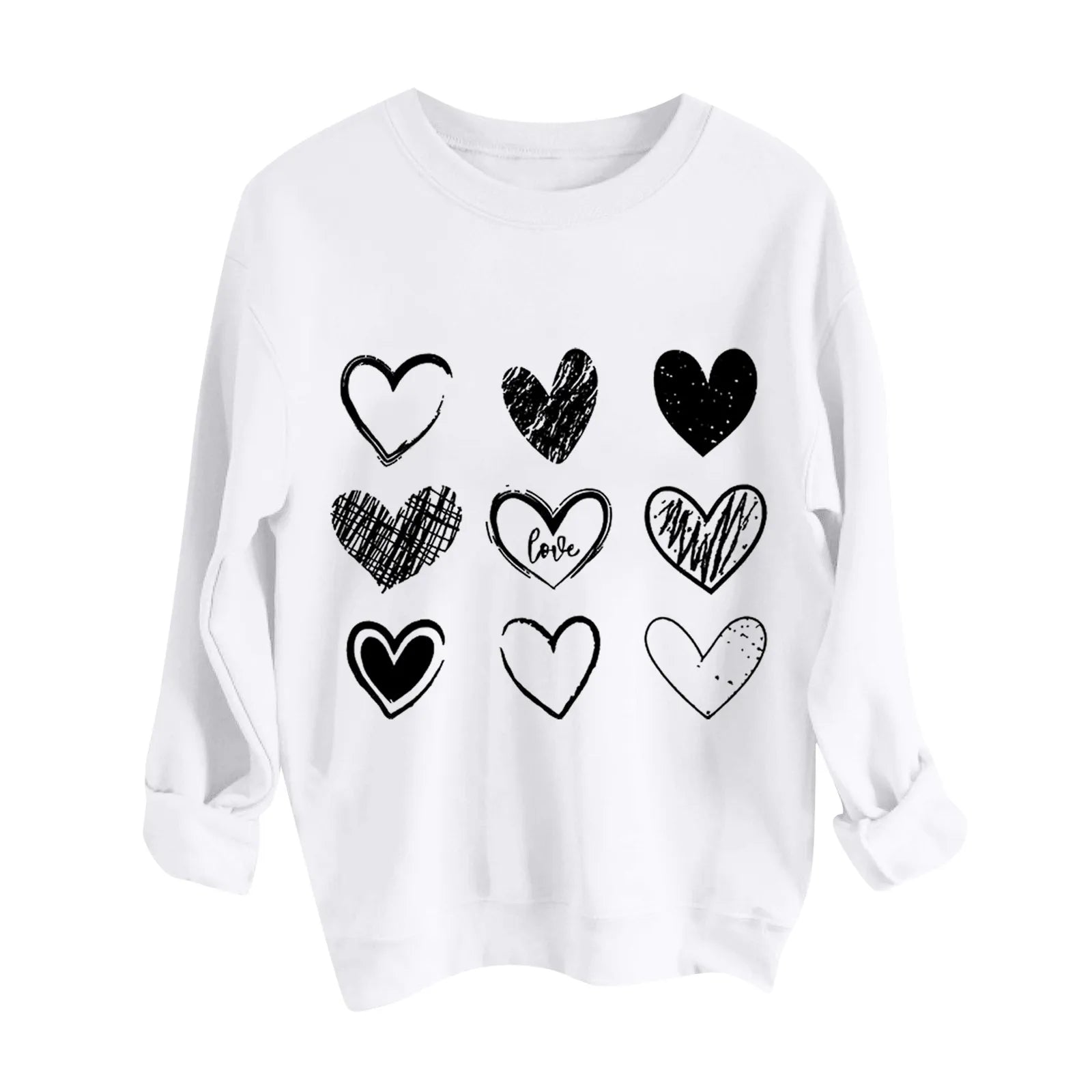 Women's Autumn And Winter Loose Heart Printed Hooded Sweatshirt Casual Fashion Sports Sweatshirt